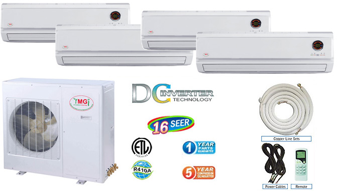 9+9+9+18K YMGI QUAD ZONE DUCTLESS MINI SPLIT AIR CONDITIONER HEAT PUMP 208-230V 16 SEER DC INVERTER 48K/9EW-9EW-9EW-18EW New product - Quad Zone Air Conditioner Heat Pump: Wall Mount