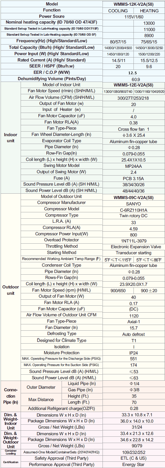 12000 BTU Mini Split Air Conditioner AC / HEAT PUMP - INVERTER UNIT