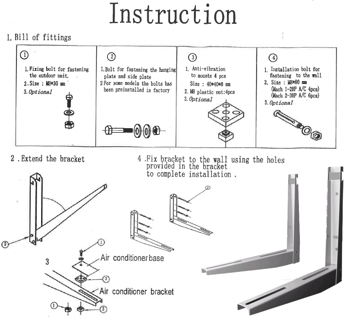 What are mini split air conditioners? Like the central air conditioner units, ductless mini split air conditioners have two main components: an outdoor compressor/condenser, and an indoor air-handling unit. A conduit, which houses the power cable, refrigerant tubing, suction tubing, and a condensate drain, links the outdoor and indoor units through a small hole (3 inches usually) that is drilled in the wall of the building. The main advantages of mini split air conditioners are their small size and flexibility for zoning or heating and cooling individual rooms. The number depends on how much heating or cooling is required for the building or each zone (which is also affected by how well the building is insulated). Since each of the split air conditioner zones/rooms will have it's own thermostat, you only need to condition that area when someone is present, which saves energy and money. If you are in a office building at a higher floor, you can also install Outside Compressor using our Wall Bracket.