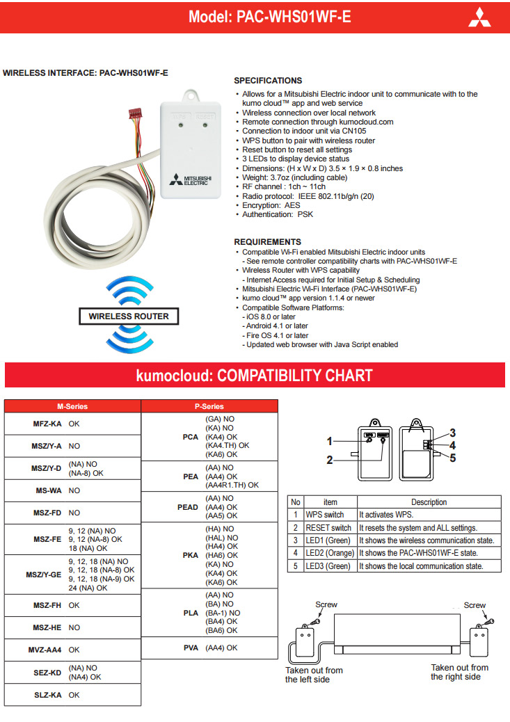 Mitsubishi PAC-USWHS002-WF-2 Ductless Wi-Fi Interface Adapter for Kumo Cloud