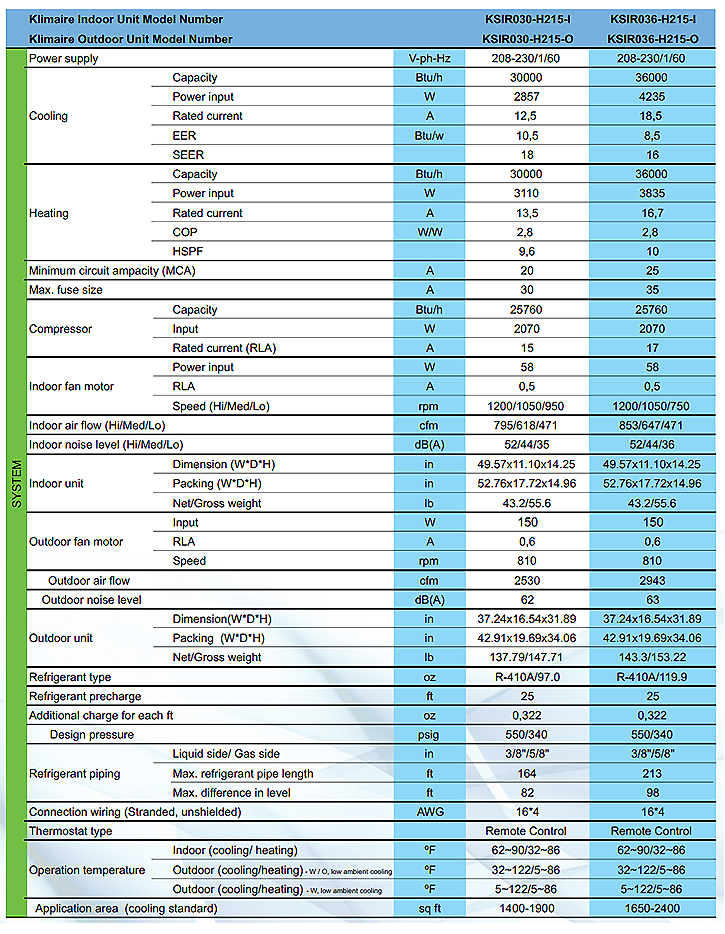 Other benefits of Klimaire KSIR030-H215-S(W) mini-split air conditioner heat pump system include: