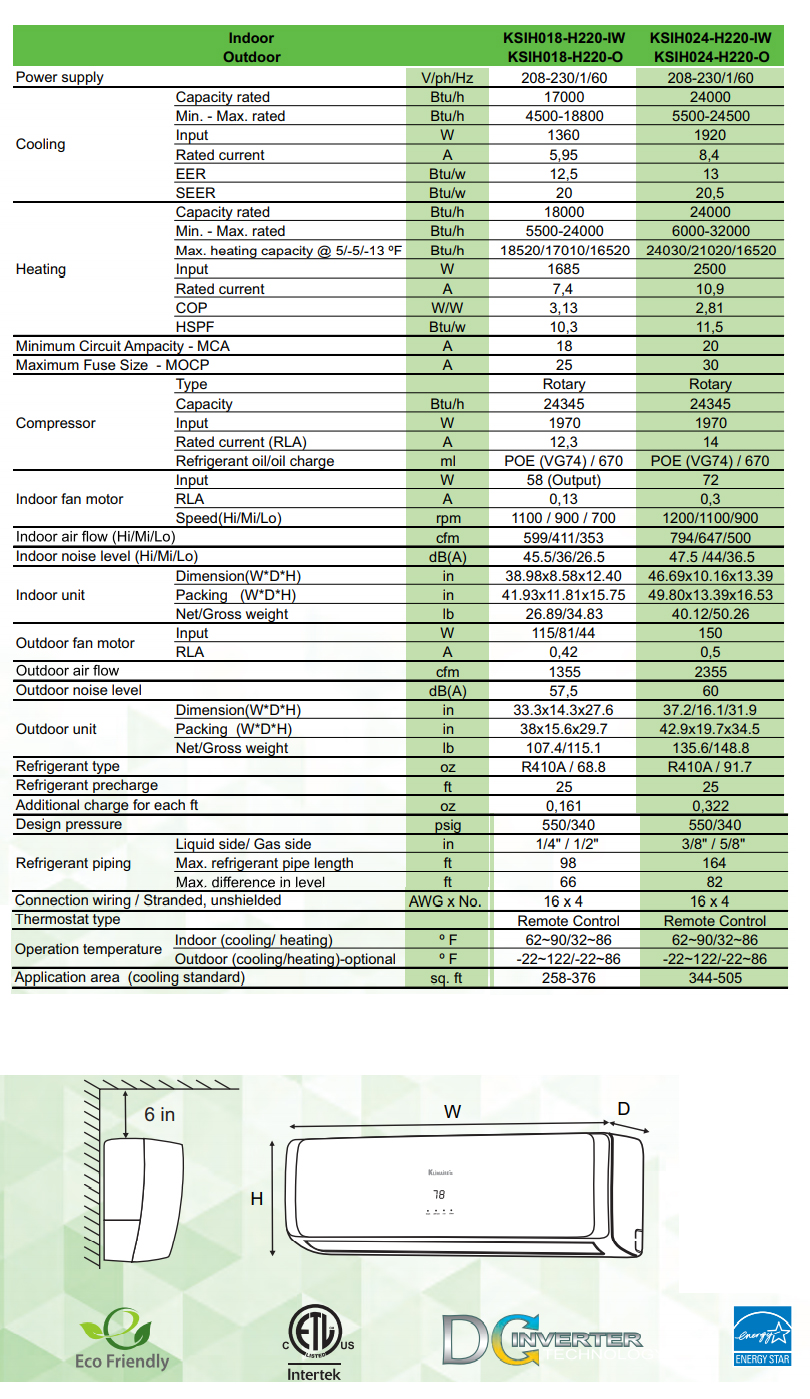 Klimaire KSIH024H220SW Overview