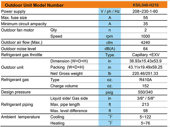 Product Name: Klimaire KSIL048-H216-OC Commercial Single Zone Condenser