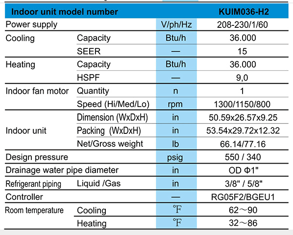 Product Name : Klimaire KUIM036H2 36000 BTU Floor/Ceiling Mount Indoor Unit Ducltess Split Air conditioner
