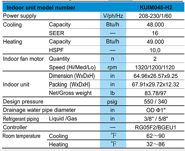 Product Name : Klimaire KUIM048-H2 48000 BTU Floor/Ceiling Mount Indoor Unit Ducltess Split Air conditioner