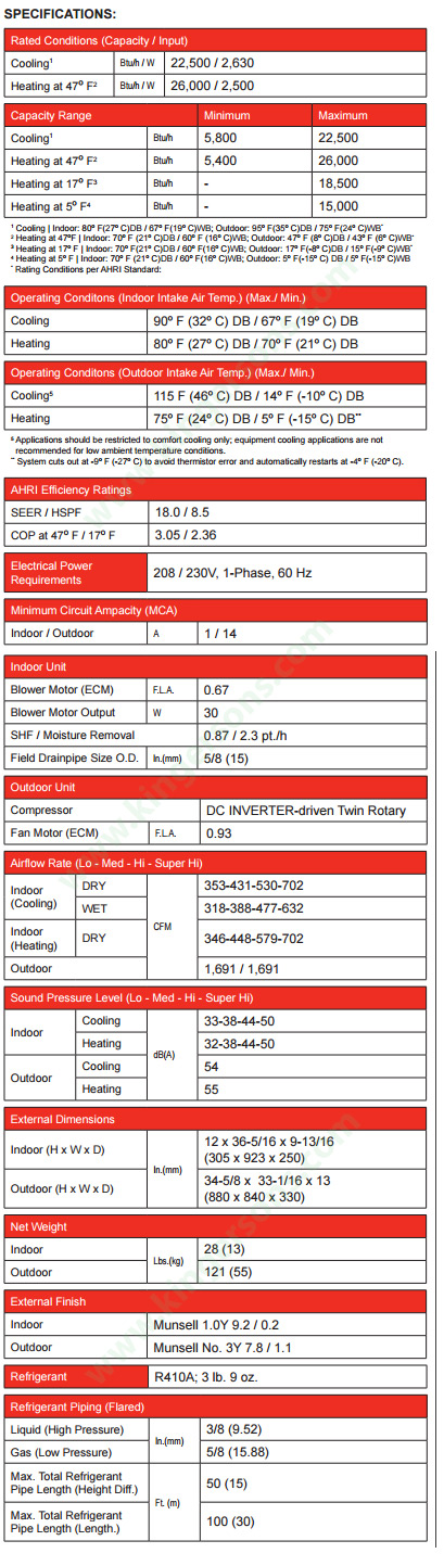 ACCESSORIES: Indoor Unit - Condensate Pump (BlueDiamond X87-711/721; 115/230V) - Condensate Pump (Sauermann SI30-115/230; 115/230V) - Anti-Allergy Enzyme Filter (MAC-408FT-E) - Drain Pan Level Sensor (DPLS2) Outdoor Unit - Outdoor Mounting Pad (ULTRILITE1) - Drain Pan Heater (MAC-640BH-U) - 3-1/4” Mounting Base [Pair] (DSD-400P) - Drain Pan Socket (MAC-860DS) - Air Outlet Guide (MAC-889SG) - Wall Mounting Bracket (QSWB2000M-1)