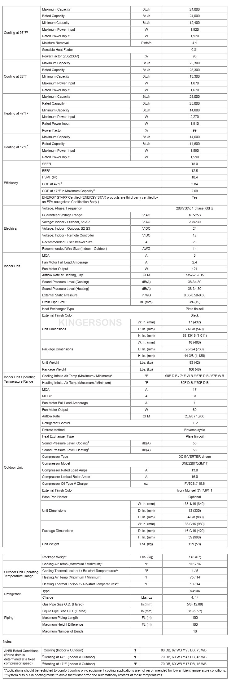 Mitsubishi - 24000 BTU Cooling Heating - M-Series Multi-Position Air Handler Air Conditioning System - 18 SEER SV-KP24NA