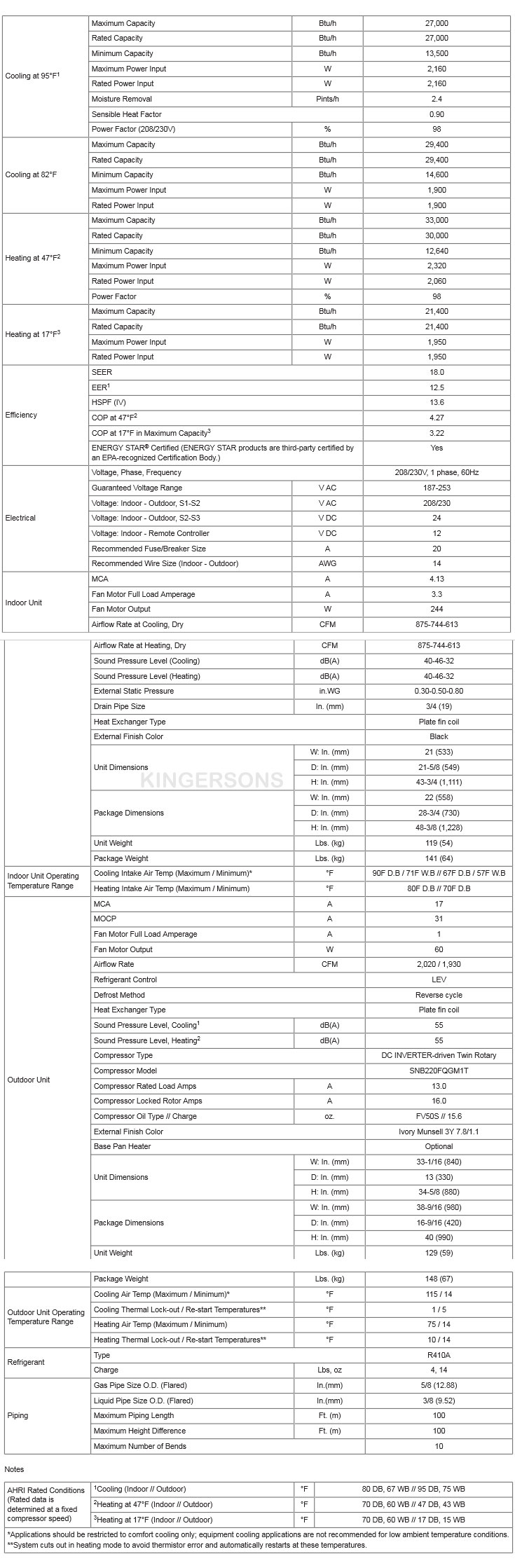Mitsubishi - 30000 BTU 2.5 TON Cooling Heating - M-Series Multi-Position Air Handler Air Conditioning System - 18 SEER SV-KP30NA