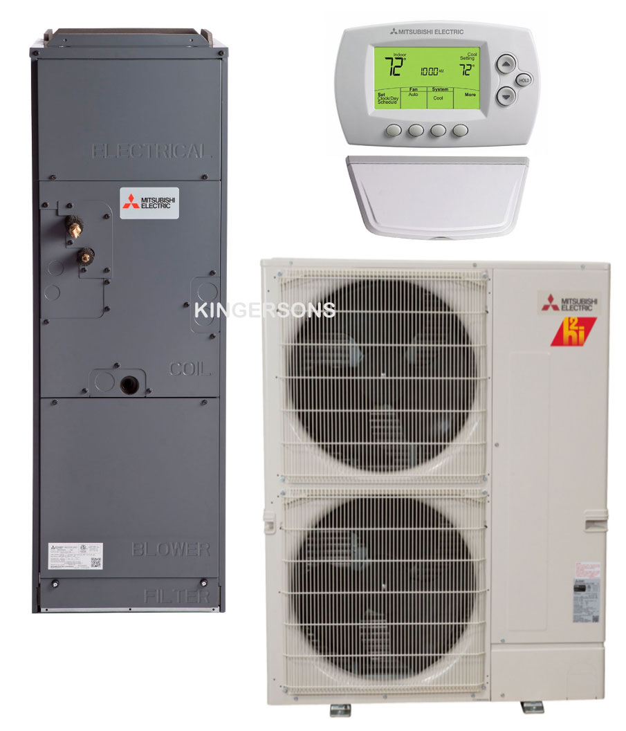 For over 50 years, Mitsubishi has remained at the forefront of the mini split industry thanks to their dedication to providing efficient, user-friendly comfort solutions. Part of Mitsubishi's hyper-heating product line, the PVZ-HA42NHA is a single zone heat pump air handler system designed to bring high-efficiency zoned temperature control to large homes and businesses in frigid climates. A multi-positional air handler, PVA-A42AA4, is paired with an outdoor condenser that uses some of the most advanced technology available to modulate temperature without the energy-wasting overshoots and short-cycling associated with simpler systems. As a multi-positional unit, it is easy to install the indoor unit in nearly any setting. As part of Mitsubishi's commercial P-Series, the condenser is constructed with industrial-grade materials to ensure consistent performance in the harshest conditions, making this system ideal for critical applications that require constant conditioning in a sub-freezing environment. Product FeaturesPrecision Temperature Control Technology The PUZ-HA42NHA4 outdoor condenser is equipped with inverter technology and an electronic linear expansion valve. By adjusting compressor speed and refrigerant flow, the output of the unit can be matched to the zone for precise temperature control and improved efficiency. H2i Technology Low or negative ambient temperatures don't bother the PUZ-HA42NHA4. It is rated for 100% heating capacity at 5 degrees F, 90% at -4 degrees F, and 80% at -13 degrees F. The PVZ-HA42NHA4 also features hot-start heat-pump technology to ensure that no cold air escapes during warm up. Dehumidification When the indoor unit is run in dry mode, the coil's temperature stays just below the dew point of the return air, removing unwanted moisture. This improves your comfort and reduces the chance of mold growth and other property damage in the conditioned space. Advanced Remote Controller The MHK1 wireless wall mounted remote controller kit supports dual set point control and multiple scheduling options. It also has Optimal Start functionality for learning how quickly your zone is cooled and heated, then adjusting scheduled operations so that the zone is always the right temperature at the right time.