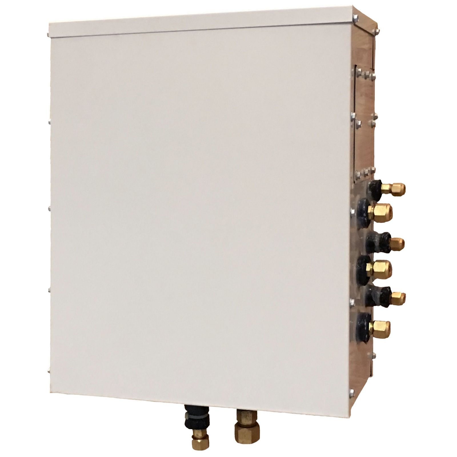 BBE-1 Branch Box Enclosure meets NEMA Type 3R rating for protective enclosures. This design provides mounting location flexibility. The enclosure ships knocked down, requiring a minimum size shipping container. This allows the enclosure to be built up around the Branch Box for ease of installation. The BBE-1 adjusts to work with either the three or five port Branch Boxes. It can be mounted vertically or horizontally and like the Branch Box is reversible to pipe from either side.