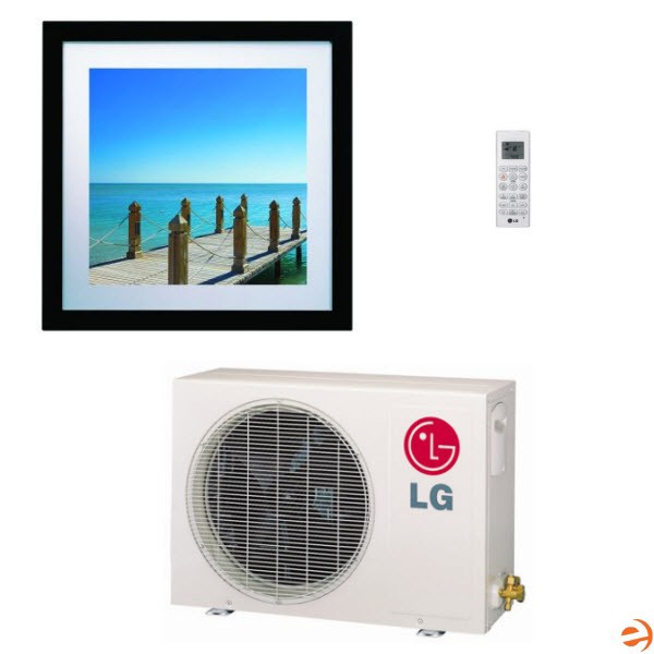 The LG LA120HVP Art Cool Gallery Wall Mounted Heat Pump Mini Split System is 16 SEER rated and includes (1) LAU120HVP Outdoor Condenser and (1) LAN120HVP Indoor Unit. This single zone system uses a heat pump to provide both heating and cooling to your home or commercial area while providing a more aesthetically pleasing backdrop to your room. LG Art Cool Gallery indoor units are designed to display artwork or photography. With a maximum heating capacity of 13,300 BTU/hour and a maximum cooling capacity of 11,200 BTU/hour, this LG system provides comfortable temperatures in most environments. Revolutionary inverter technology minimizes energy loss, improving the system's overall energy efficiency. The LA120HVP system includes a wireless remote control.