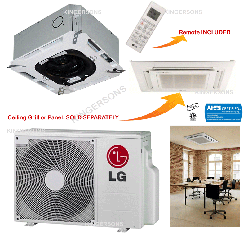 LG Electronics' products have led the global air conditioner market with excellent performance and innovative design. The Ceiling Cassette LG models are ideal for light commercial applications and work well in large, open spaces. These are high performance air conditioners with a high SEER inverter and excellent design. - Ceiling grill required for installation - Sold Separately. Model# PT-UMC1 CLICK here