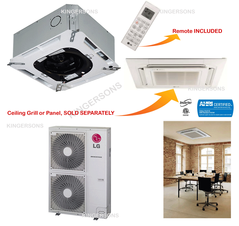LG Electronics' products have led the global air conditioner market with excellent performance and innovative design. The Ceiling Cassette LG models are ideal for light commercial applications and work well in large, open spaces. These are high performance air conditioners with a high SEER inverter and excellent design. - Ceiling grill required for installation - Sold Separately. Model# PT-UMC1 CLICK here