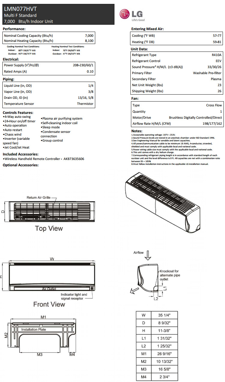 LG LMN078HVT 7,000 Btu Ductless Indoor unit