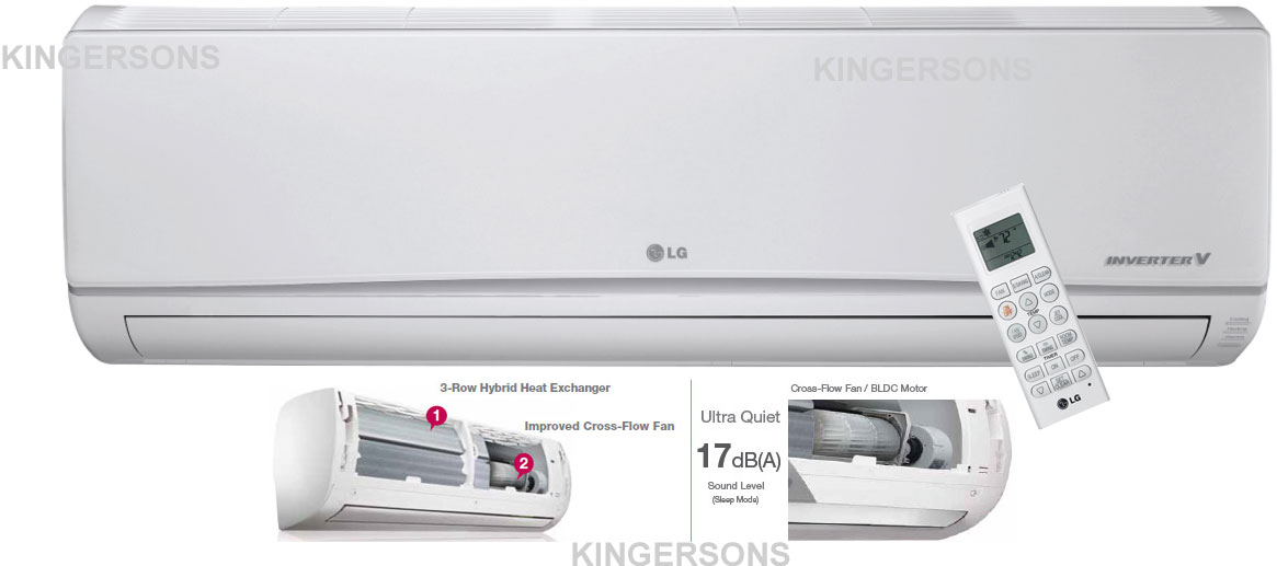 The LG split systems include an inverter heat pump. Air conditioners with inverter technology use a variable speed compressor which continues to operate at a low speed to maintain the temperature. Conventional Air Conditioners use a constant speed compressor that completely shuts off once the temperature is achieved. A mini split is also quieter to operate and uses less energy than conventional air conditioners