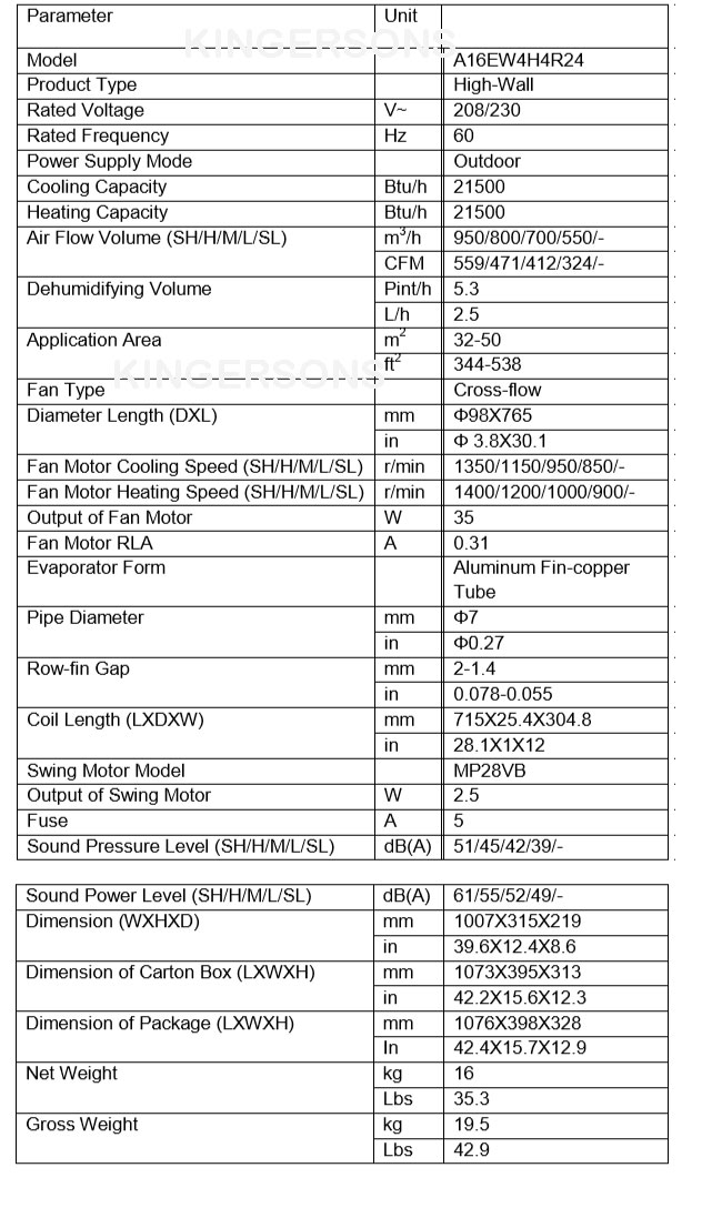 24,000 Btu AIRCON Wall Mount Indoor Unit Only A16EW4H4R24