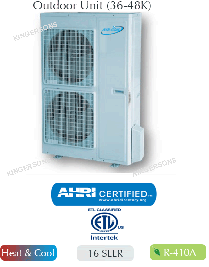 The Air Con A16CM4H4R42 41,000 BTU 16 SEER Ductless Multizone Heat Pump Condenser is part of the Air Con's Platinum Series Heat Pumps that can do both heat and cool. The Air Con A16CM4H4R42 comes with an Inverter Technology, which uses an advanced control method that allows power to adjust in wide ranges, therefore saving you money.