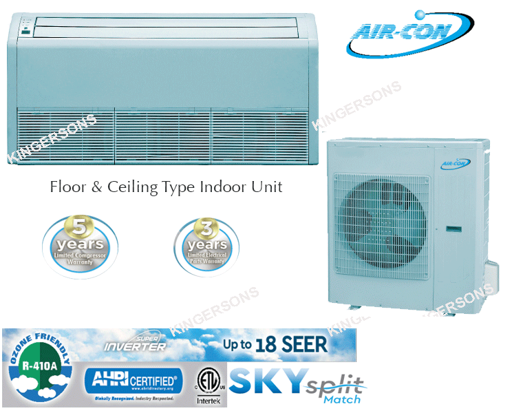 AIRCON FLOOR & CEILING MINI SPLIT HEAT PUMP 17 SEER 18,000 BTU