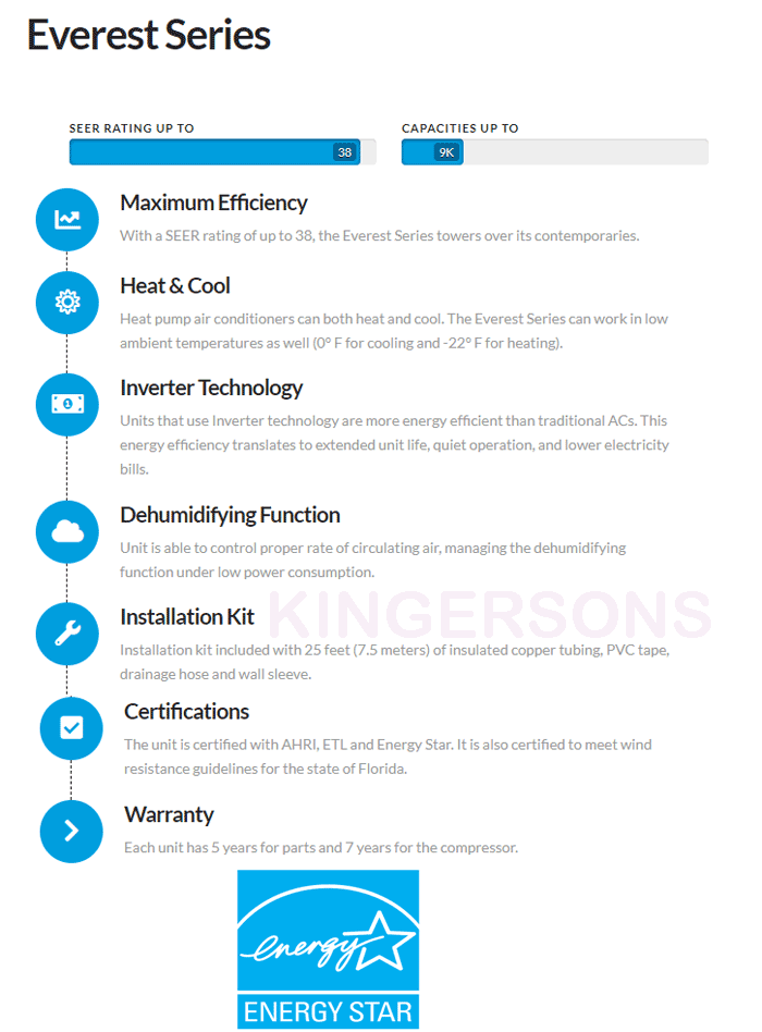 Now once you have decided how many units you need, it is time to see what features you want. Low Ambience Feature For example if you live in New York where the temperature goes below 15 deg quiet a few times in a year and if you need this AC unit to do the heating job as well in the winter time, in that case DO NOT buy the standard SEER 13 without Low Ambience. You need the unit that has Low Ambience operation as they can produce heat in temperature as low as minus 4 deg or zero deg depending upon which unit you end up buying. YMGI/LG/Friedrich/Haier for example have units that produce heat in temperature as low as zero deg.