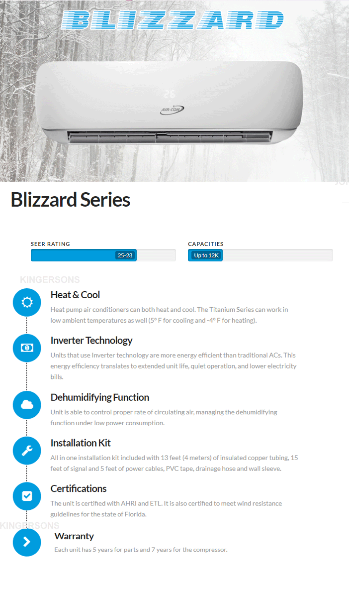 Aircon Blizzard SERIES DC INVERTER Ductless Split System 9000 Btu SEER 28 Heat Pump ABZCI/EM4H4S09