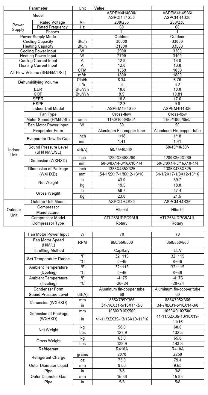 Aircon ECLIPSE SERIES DC INVERTER Ductless Split System 36000 Btu SEER 18 Heat Pump ASPCI/EM4H4S36