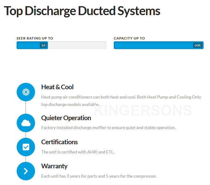 AIR-CON Top Discharge Ducted Central AC, Cool Only Specs