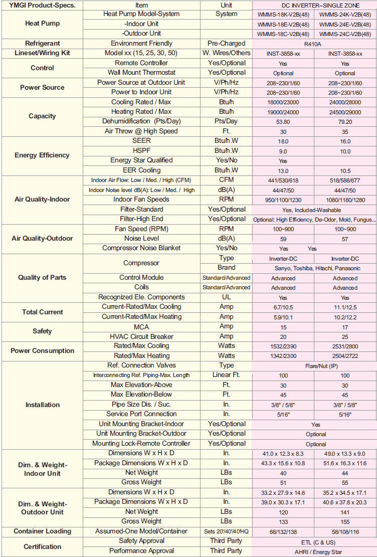 · 5-year on compressor and 1-year other parts.