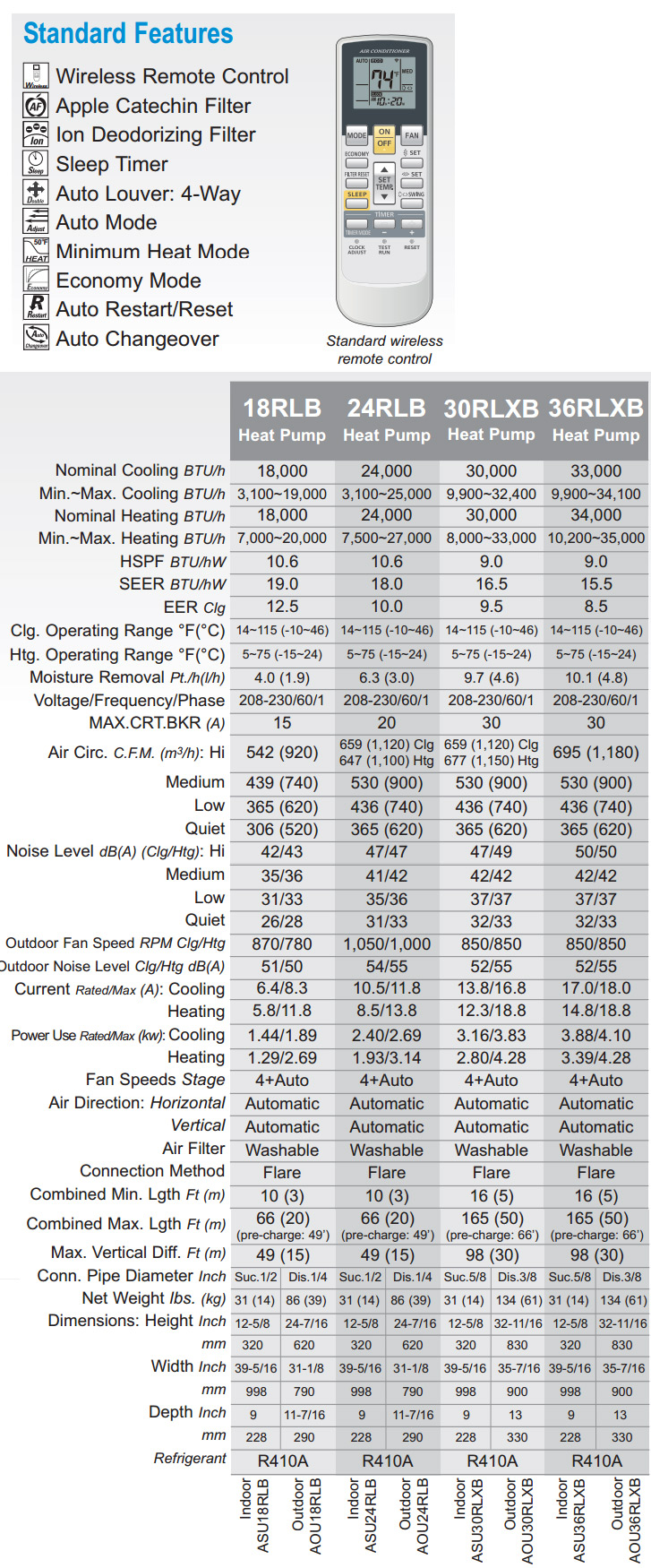 Product Name : Fujitsu ASU36RLXB AOU36RLXB 36,000 BTU 15.5 SEER Ductless Mini Split Heat Pump