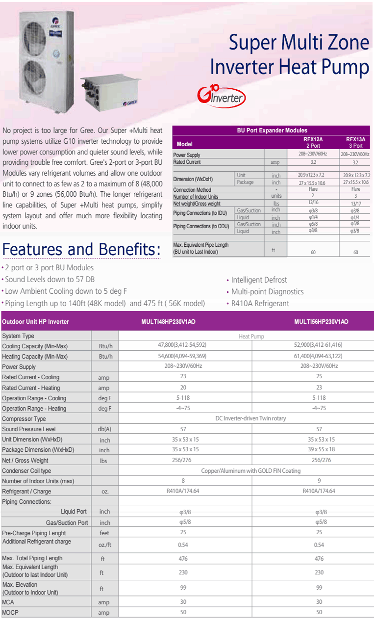 GREE MULTI MULTI48HP230V1CO 8 Zone OUTDOOR UNIT ONLY SEER 16 Ductless System