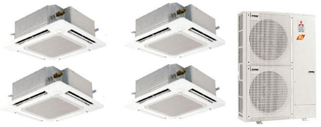 Mitsubishi MXZ8B48NA+SLZKA09NA+SLZKA12NA+SLZKA15NAx2 Mr. Slim Ceiling Cassette Quad Zone Mini Split Heat Pump System - 51000 BTU. Includes (1) MXZ8B48NA 48000 BTU Outdoor Unit, (1) SLZKA09NA 9000 BTU Indoor Unit, (1) SLZKA12NA 15000 BTU Indoor Unit, (2) S