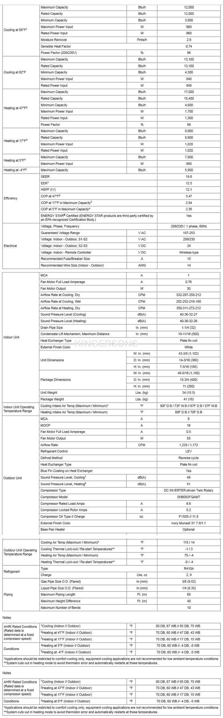 INDOOR UNIT FEATURES- Available sizes: 9, 12, 18K BTU/H