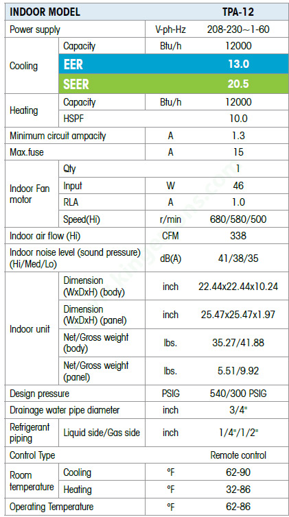 Product Name: 12000 Btu Comfortstar Ceiling Cassette Air Handler Only Air Conditioner Heat Pump TPA12