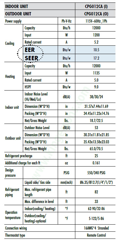 Product Name : 12000 Btu SEER 17.2 115V Comfortstar Split Air Conditioner Heat Pump CPG012CA0 CPG012CAI