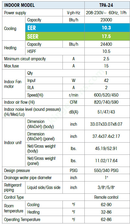 Product Name : 24000 Btu Comfortstar Ceiling Cassette Air Handler Only Air Conditioner Heat Pump TPA24