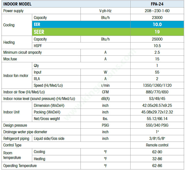Product Name : 24000 Btu Comfortstar Floor Ceiling Mount Air Handler Only Air Conditioner Heat Pump FPA24