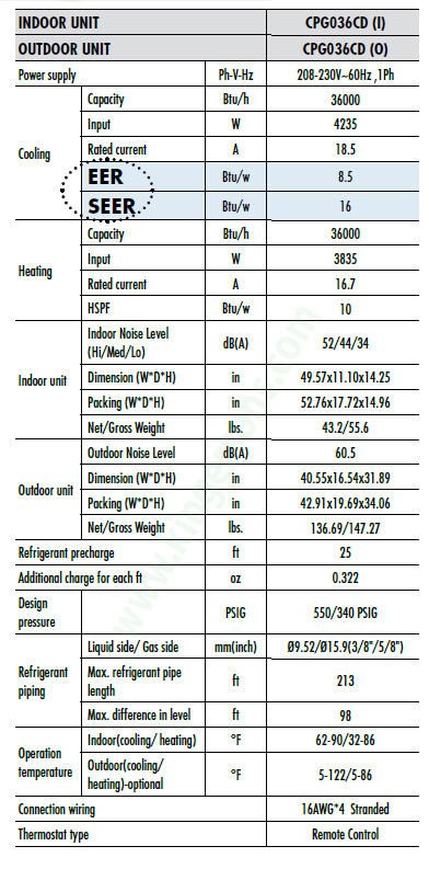 Product Name: 36000 Btu SEER 16 230V Comfortstar Split Air Conditioner Heat Pump CPG036CD0 CPG036CDI