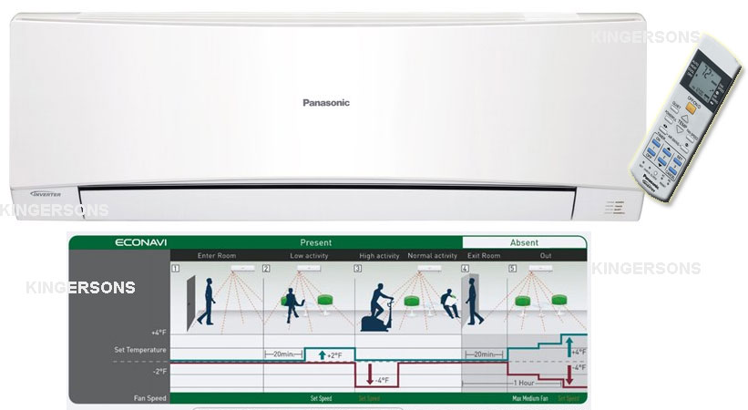 The indoor unit includes ECONAVI - Human Detection Technology. ECONAVI sensors moderate the temperature based on whether there are people in the room and how much activity is occurring. Based on this information, it automatically adjusts the temperature setting for optimum operation. If ECONAVI detects changes in activity levels it reduces or increases the cooling and heating power by adjusting the set temperature.