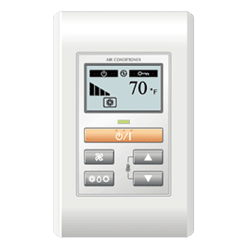 This wall mounted controller works with few Fujitsu systems. It is wired and mounts on the wall. It features very few and simple features such as temperature up/down, heat, cool or auto and speed control. Suitable when only basic operations are required for hotels, offices and other places where there is frequent arrival and departure of occupants.