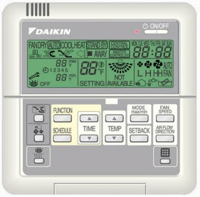 7 Day Programmable Individual Remote Controller available for use with VRV, VRV-S and SkyAir Models. This new wired remote controller p/n BRC1D71, provides all the features of the existing wired remote controller, plus the added benefits of 7 day programmability. This feature includes up to 5 different settings per day. A detailed installation and operation manual is available as well as a submittal data sheet with all the details of this new controller.