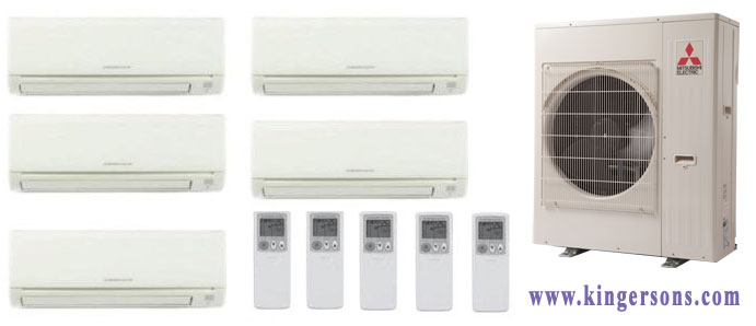 Mitsubishi Five Zone MXZ5C42NA2 MSZGL09NAU1 x (Four) MSZGL12NAU1 Ductless Split Air Conditioner