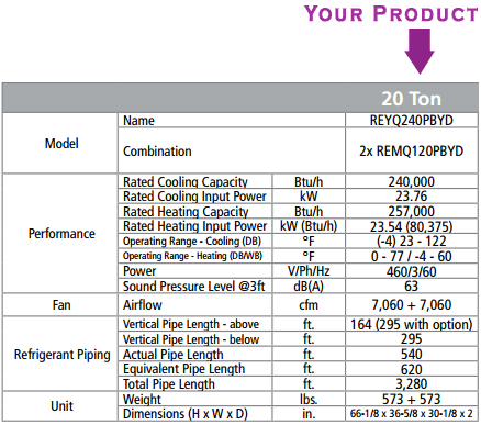 REYQ240PBYD Daikin VRV Condenser Unit 20 TON 460V Heat recovery cool and heat split system