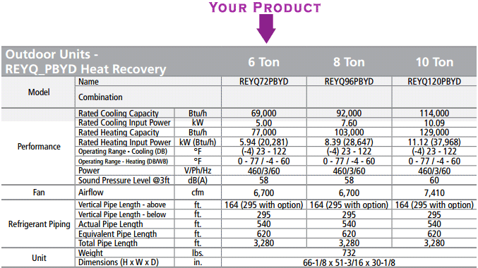 REYQ72PBYD Daikin VRV Condenser Unit 6 TON 460V Heat recovery cool and heat split system