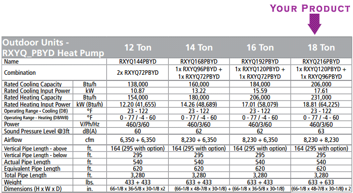 RXYQ216PBYD Daikin VRV Outdoor Unit 18 TON 430V cool and heat air conditioner condensing unit