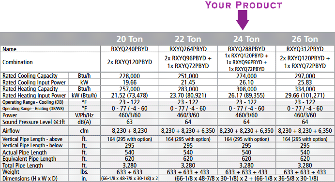 RXYQ288PBYD Daikin VRV Outdoor Unit 24 TON 430V cool and heat air conditioner condensing unit