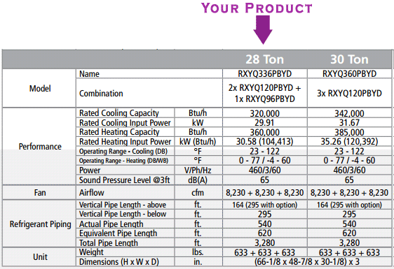 RXYQ336PBYD Daikin VRV Outdoor Unit 28 TON 430V cool and heat air conditioner condensing unit