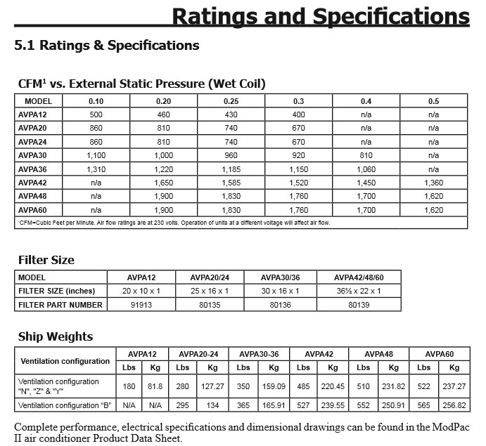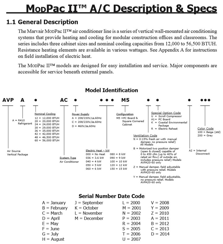 Product Name : ModPac II™ Vertical Modular Wall-Mount Air Conditioners AVPA36ACA000M7UA5100