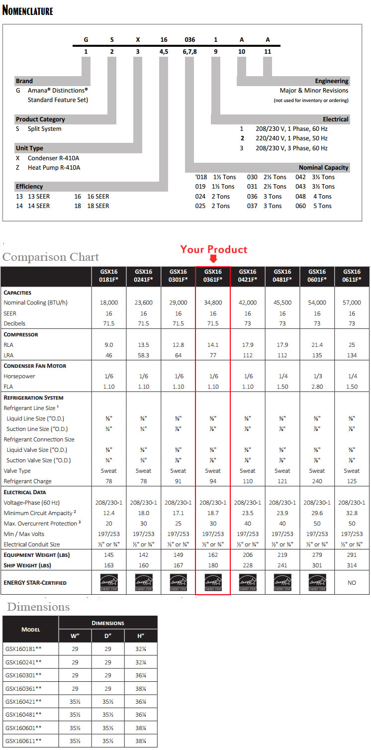 Product Name : 3 Ton Goodman GSX160361F ASPT36C14A SEER 14.5 Air Conditioner Split System