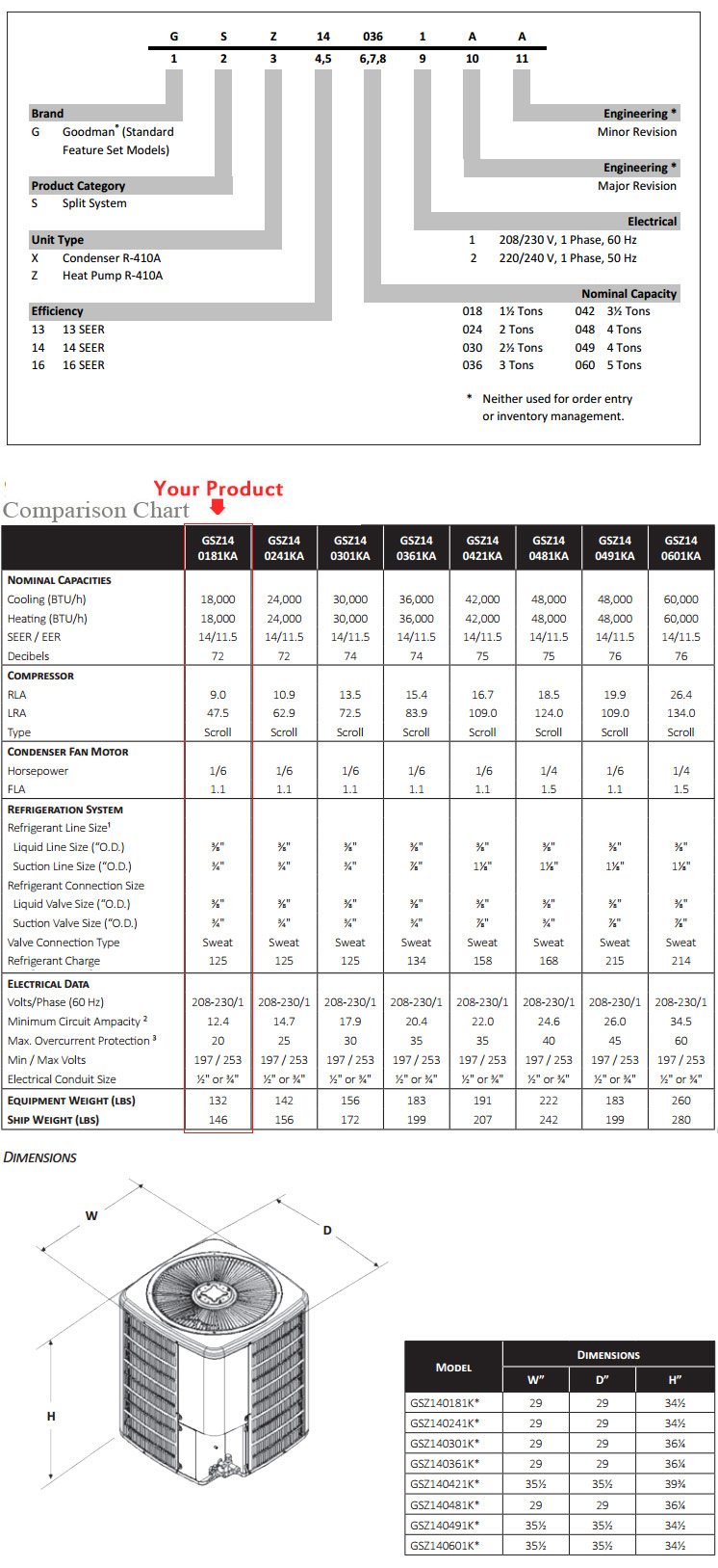 Product Name : Goodman GSZ140181K ARUF25B14A SEER 14 Heat Pump Air Conditioner Split System