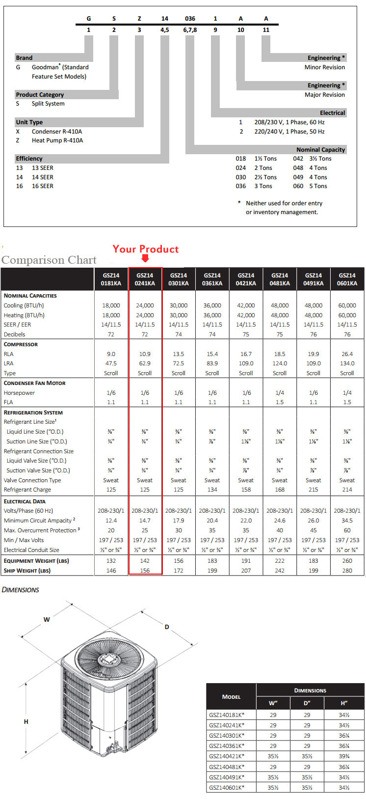 Goodman GSZ140241K AWUF310516A SEER 14.5 Heat Pump Air Conditioner Split System