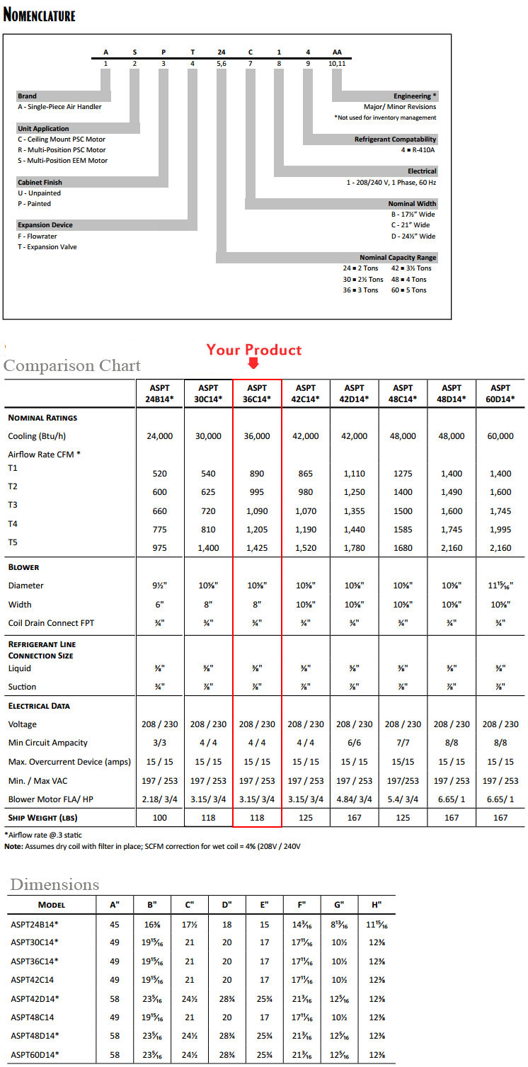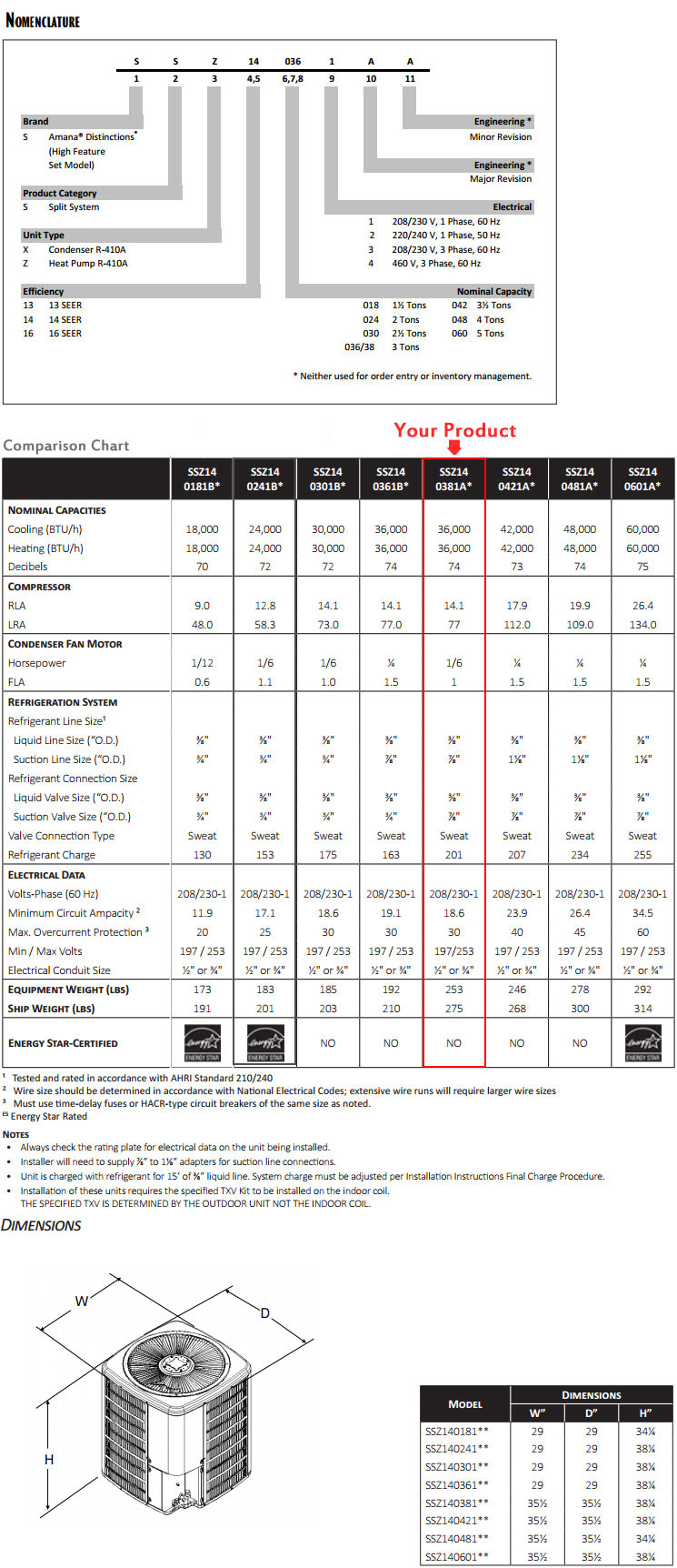 Product Name : Goodman SSZ140381A ASPT36C14A SEER 15 Heat Pump Air Conditioner Split System